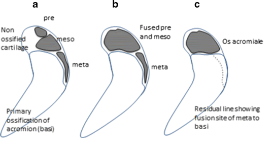 Quantos são e quais os nomes dos centros de ossificação do acrômio