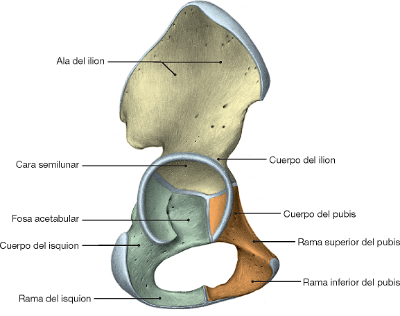 Observando el hueso coxal desde una vista lateral, puede verse una fosa profunda en forma de copa llamada ________. Esta fosa está formada por el cuerpo del ilion, el cuerpo del isquion y la rama superior del pubis.