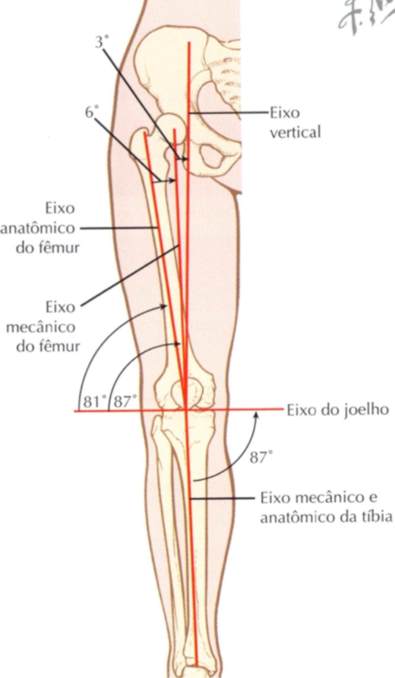 Eixo mecânico está a 3° do eixo vertical e o anatômico está a 9° do vertical