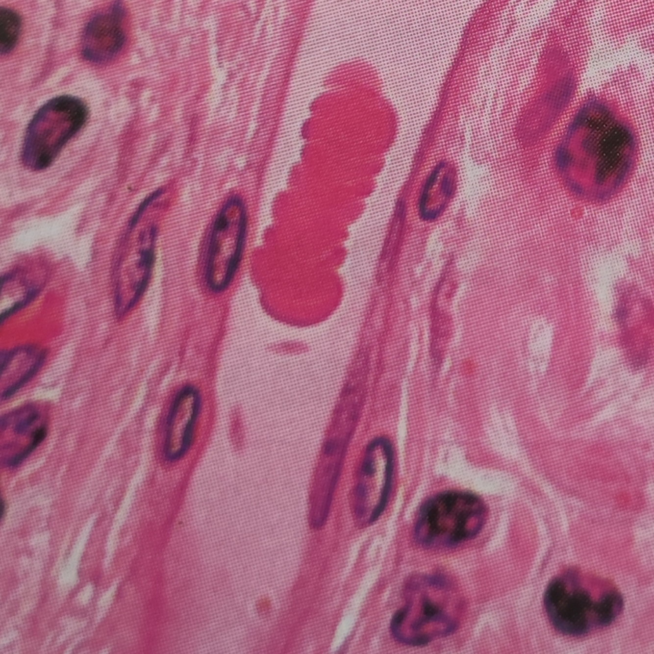 Tante fibre circondate dall’endomisio (tessuto connettivo) formano un fascicolo muscolare.