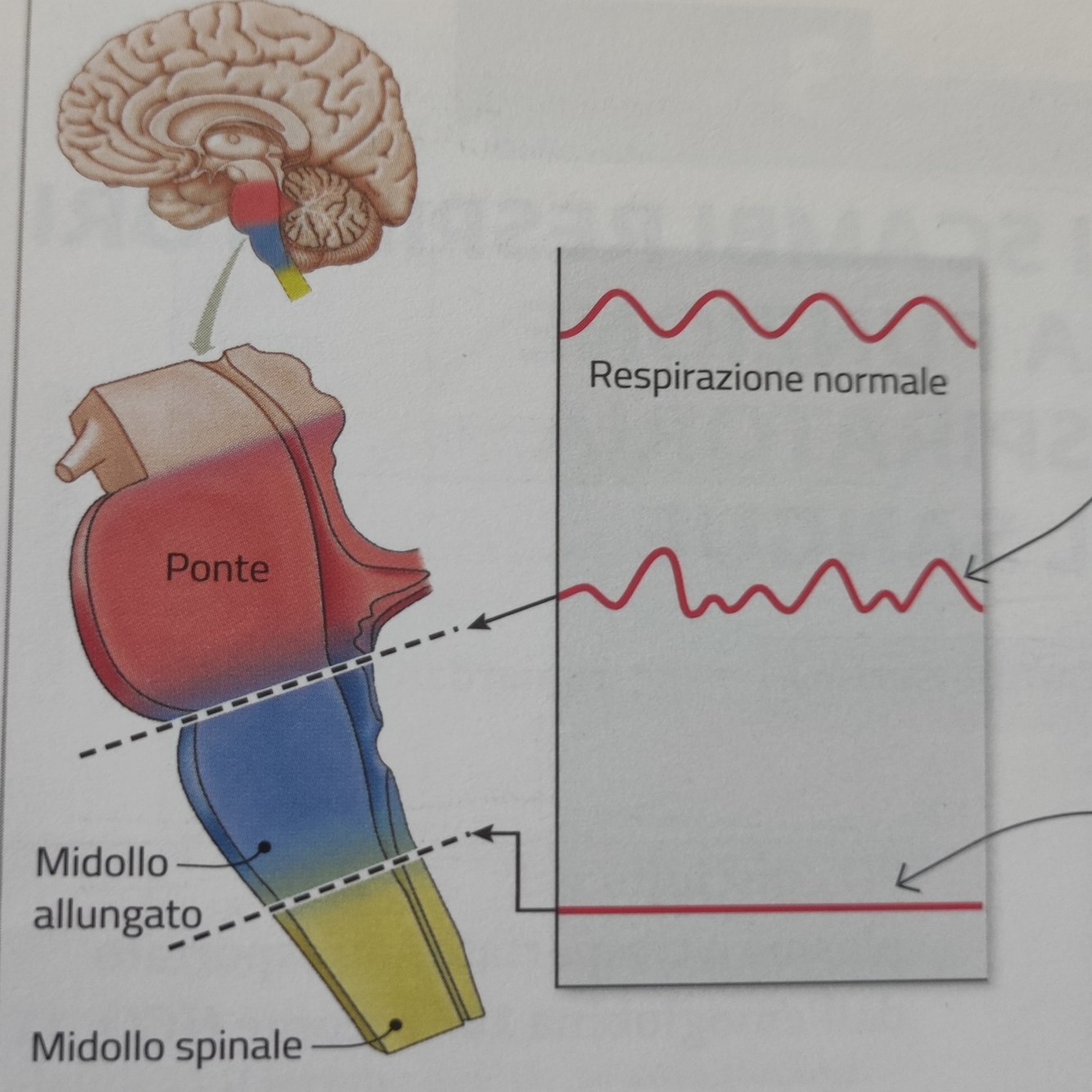 Il midollo allungato in cui ci sono il centro inspiratorio e il centro espiratorio.