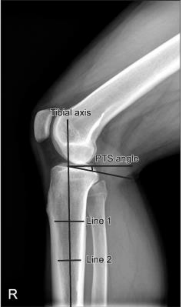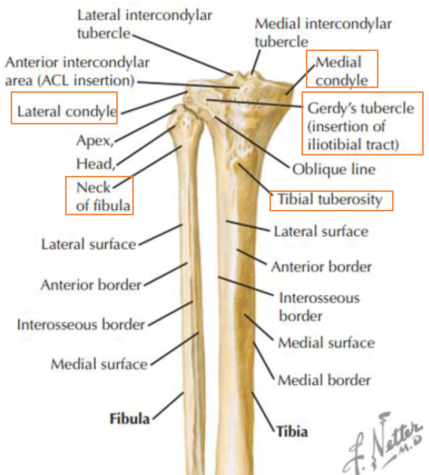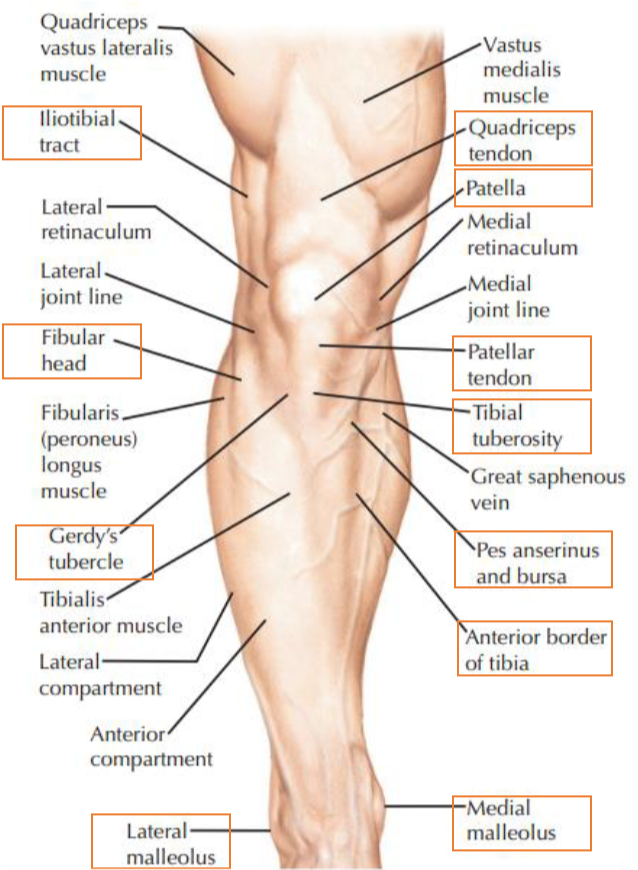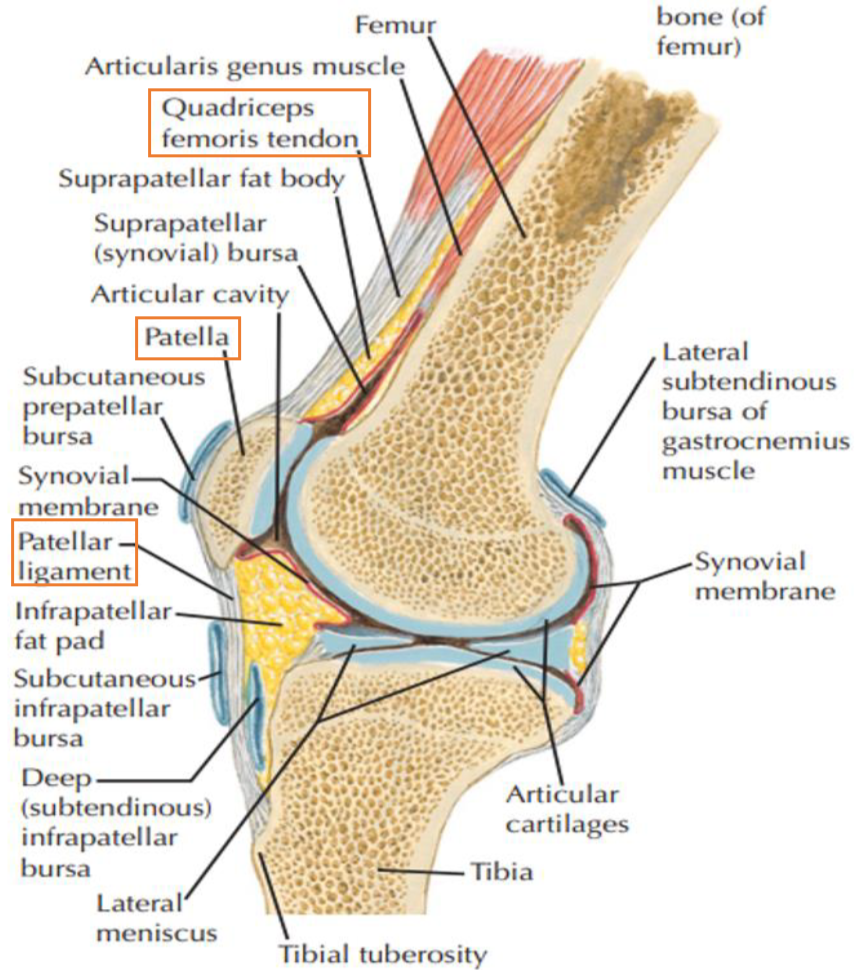 2 - Ligamento patelar inferiormente (inserção na TAT)