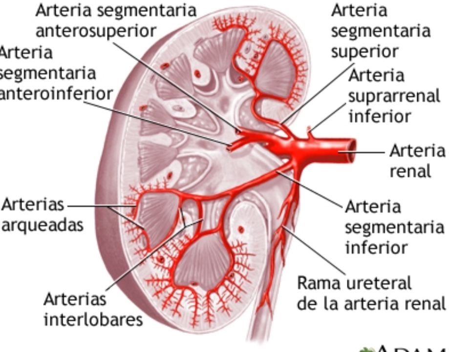 Ramas segemntarias anterior y posterior de la renal: A las pirámid.