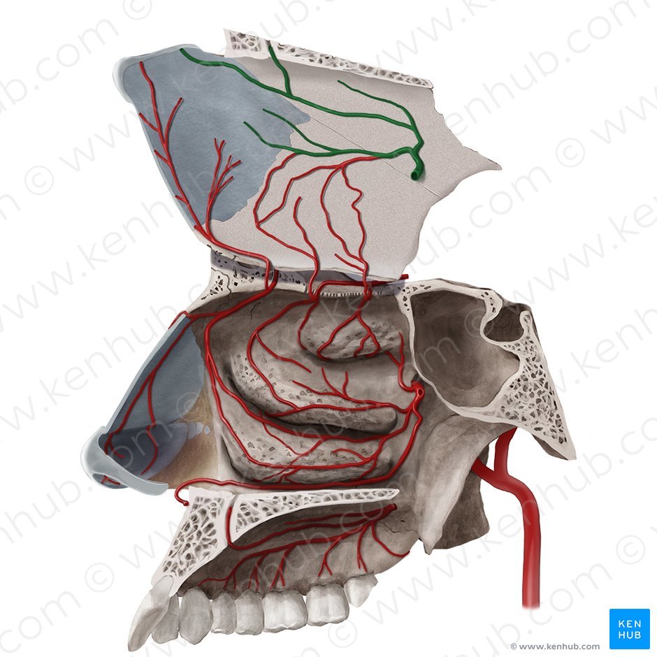 Uma das formadoras do Plexo de Kiesselbach (+ Palatina Maior, Esfenopalatina e Etmoidal Anterior).