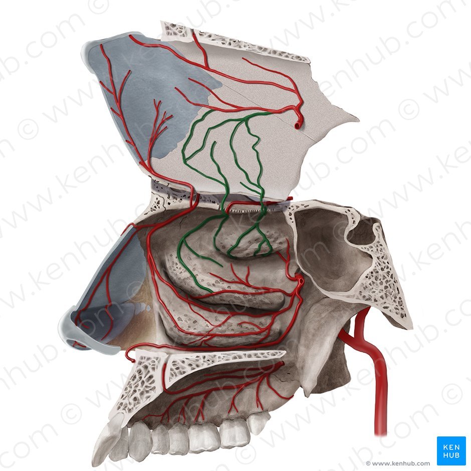 Ramos nasais laterais e septais da artéria etmoidal posterior