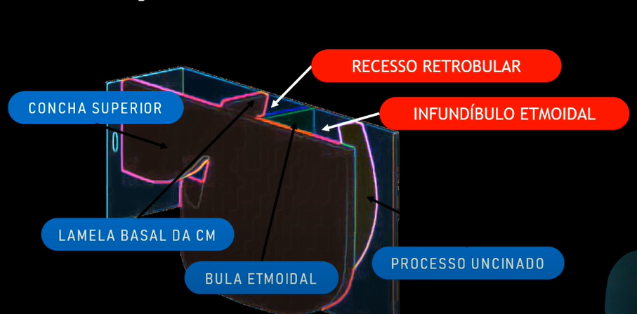 Infundíbulo etmidal (entre PU e BU): seio frontal e maxilar
