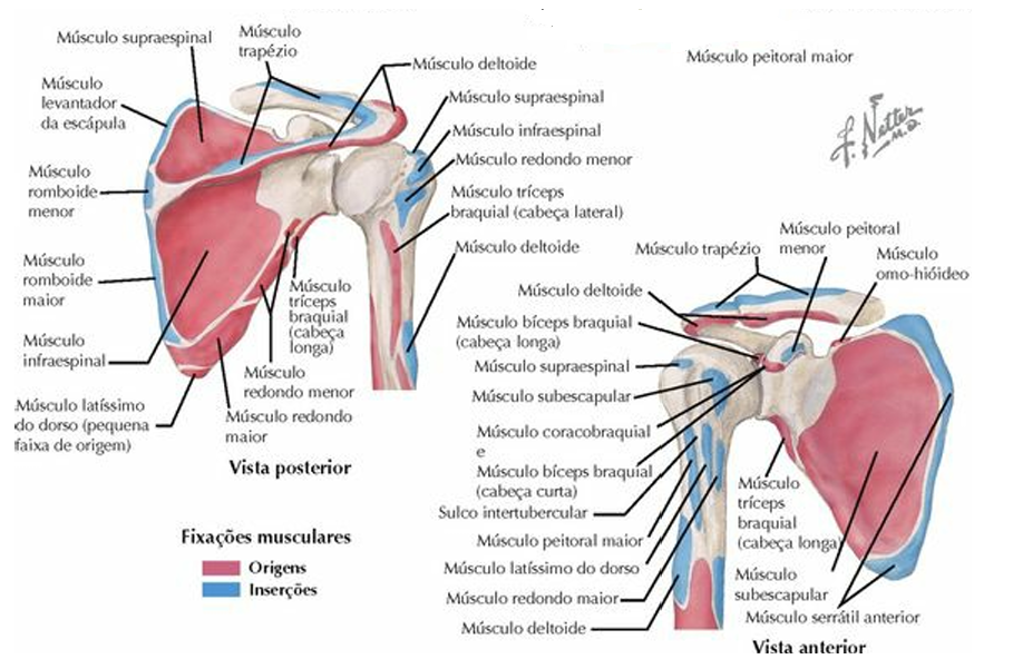 Inserção: clavícula, acromio, espinha da escápula
