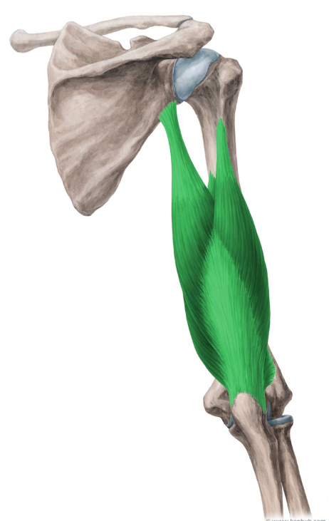 Cabeça medial e cabeça lateral: porção posterior do umero