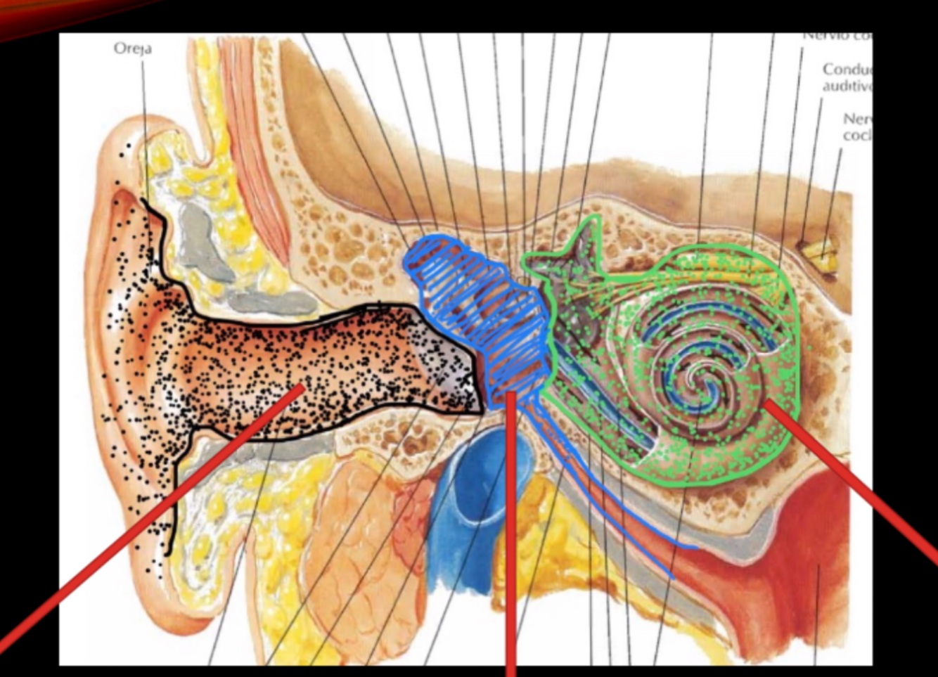Anterior, superior y posterior del pabellón auricular
