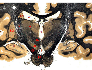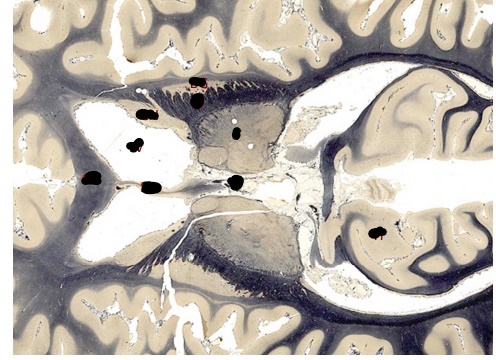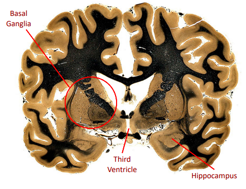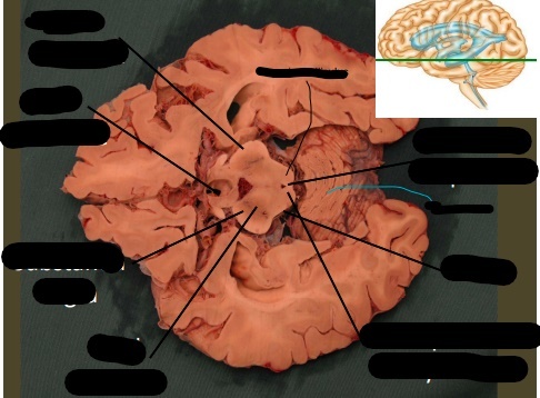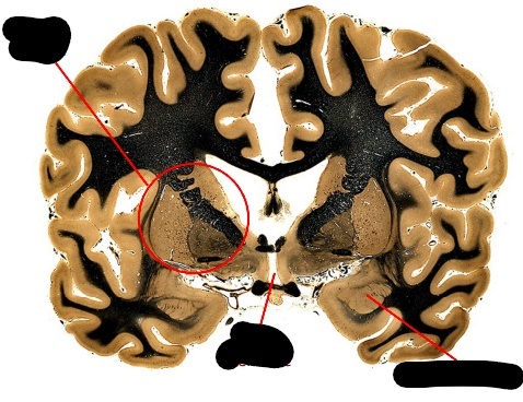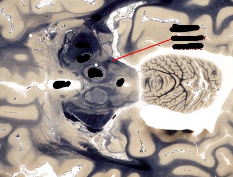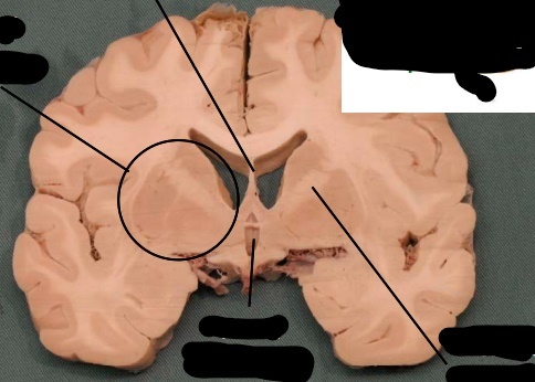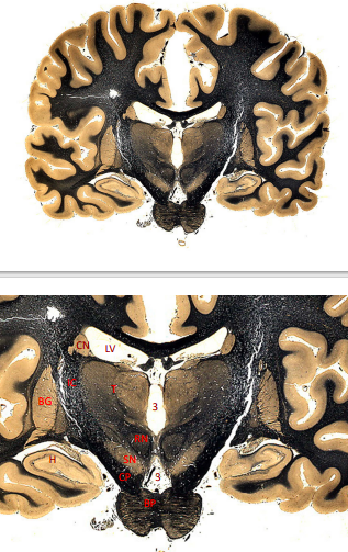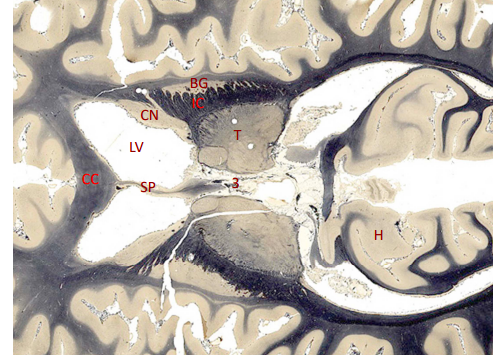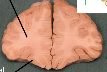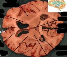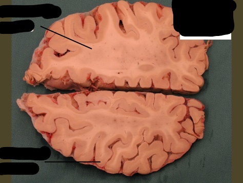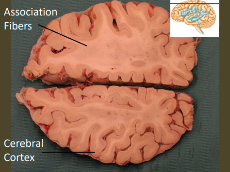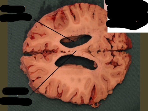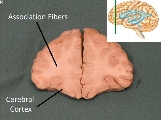 only portion of corona radiata seen right now are association fibers (which interconnect ipsilateral gyri) there are no internal capsule or lateral ventricles seen, indicating this cut is very rostral (pre-frontal cortex)