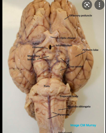 uncus is seen on the ventral (inferior) surface of cerebram, pointing towards the mamillary bodies or optic chiasm. following the uncus, the change in the basic organization of cortex indicates the hippocampus