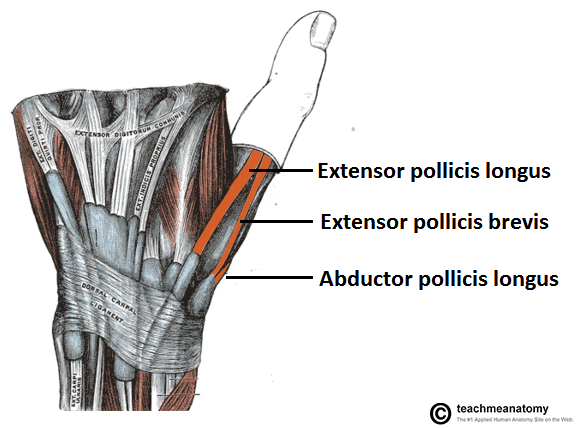 Ulnar (medial) border: Tendon of the extensor pollicis longus.