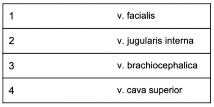 Welke venen zijn betrokken bij afvoer bloed van aangezicht naar hart?