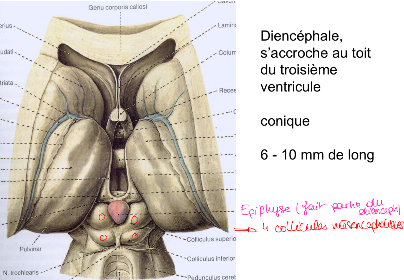 → Au dessus des 4 collicules mésencéphaliques