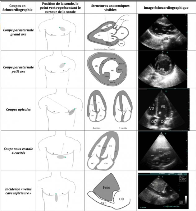 Pour chacune des coupes dire à quelle coupe échographique ça correspond