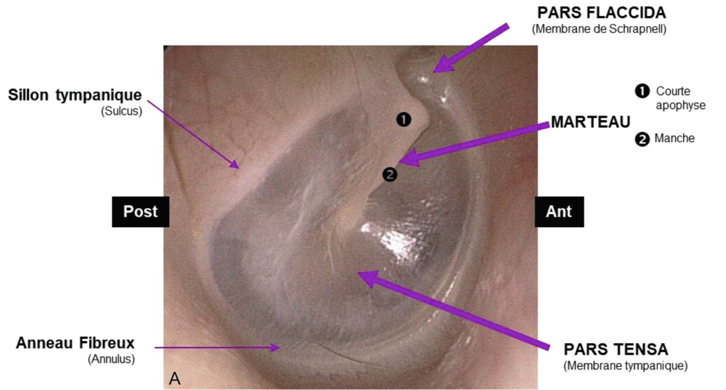 - d’un ensemble de cavités aériennes (mastoide, caisse du tympan) creusées dans l’os temporal