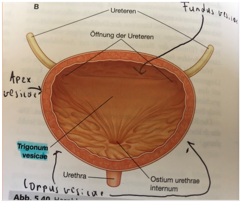 => die Öffnungen der beiden Ureteren und der Urethra bilden das Trigonum vesicae