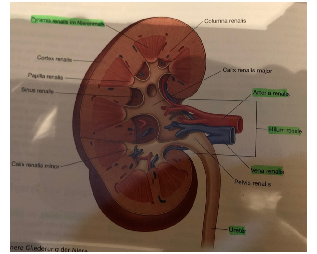 => diese nehmen den Urin auf, vereinigen sich zu großen Nierenkelche (Calix renalis major) die sich wiederum zum Nierenbecken (Pelvis renalis) vereinigen