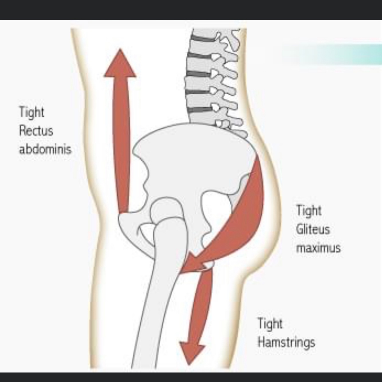 iliopsoas Tensor fascia lata adductors lumbar erector spinae Rectus femoris Quadratus lumborum Piriformis Latissimus dorsi soleus Hamstrings