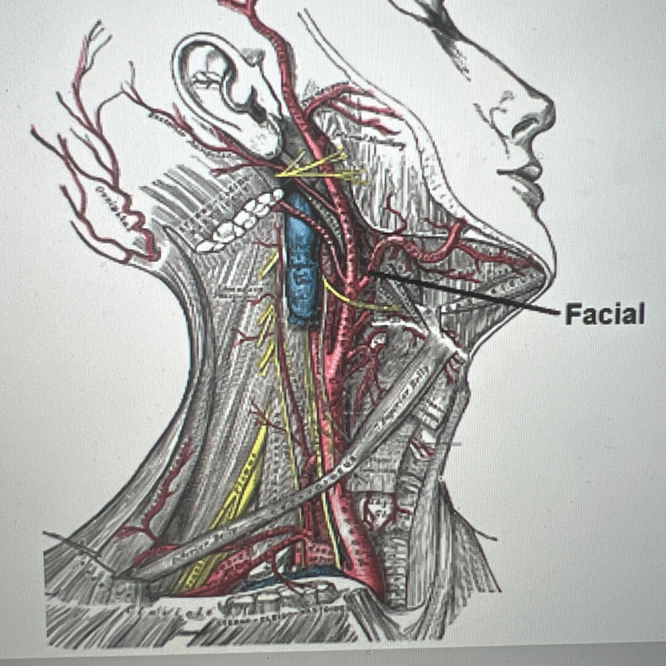 Origin: external carotid artery in the neck