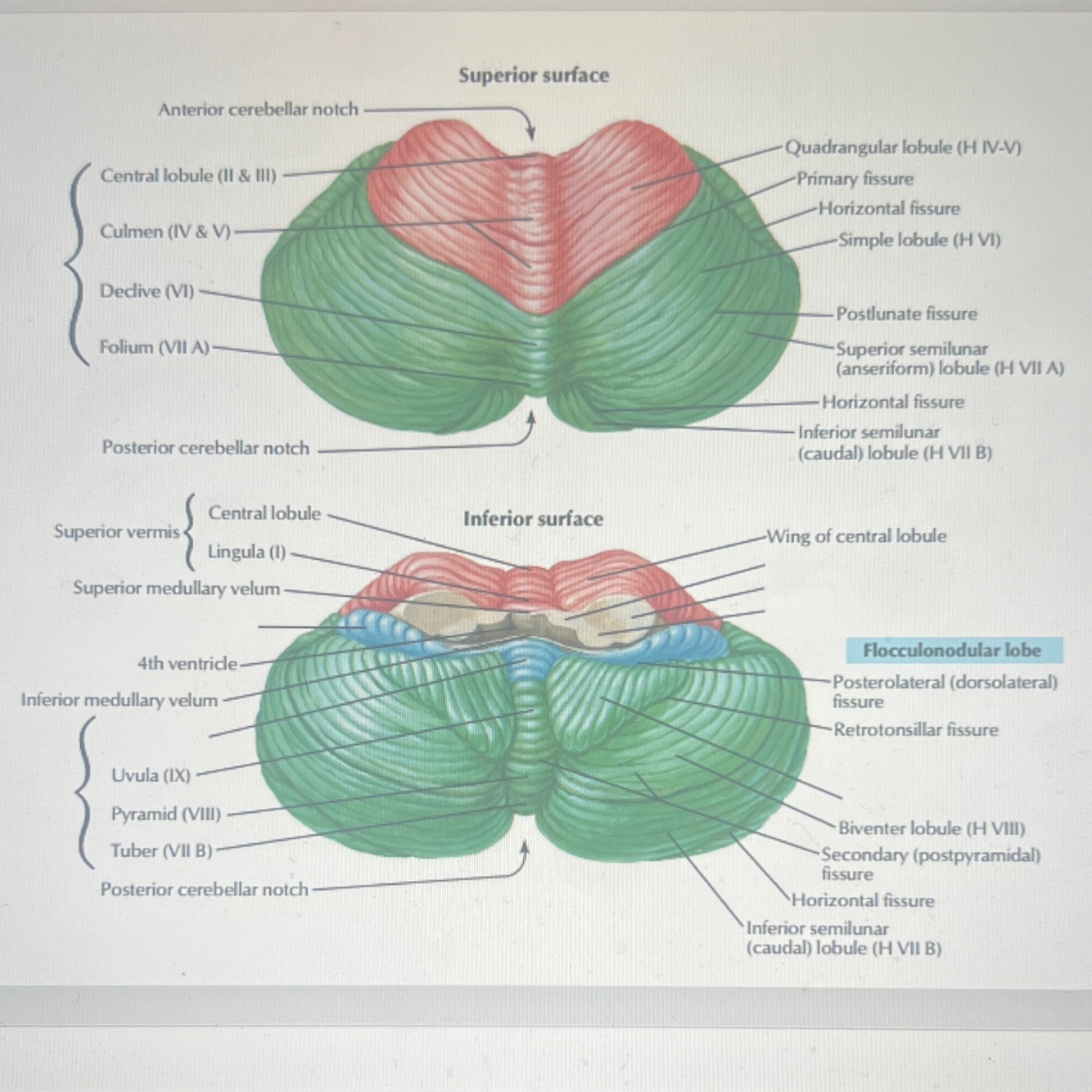 - the superior surface of the vermis is the superior vermis and its inferior surface is the inferior vermis