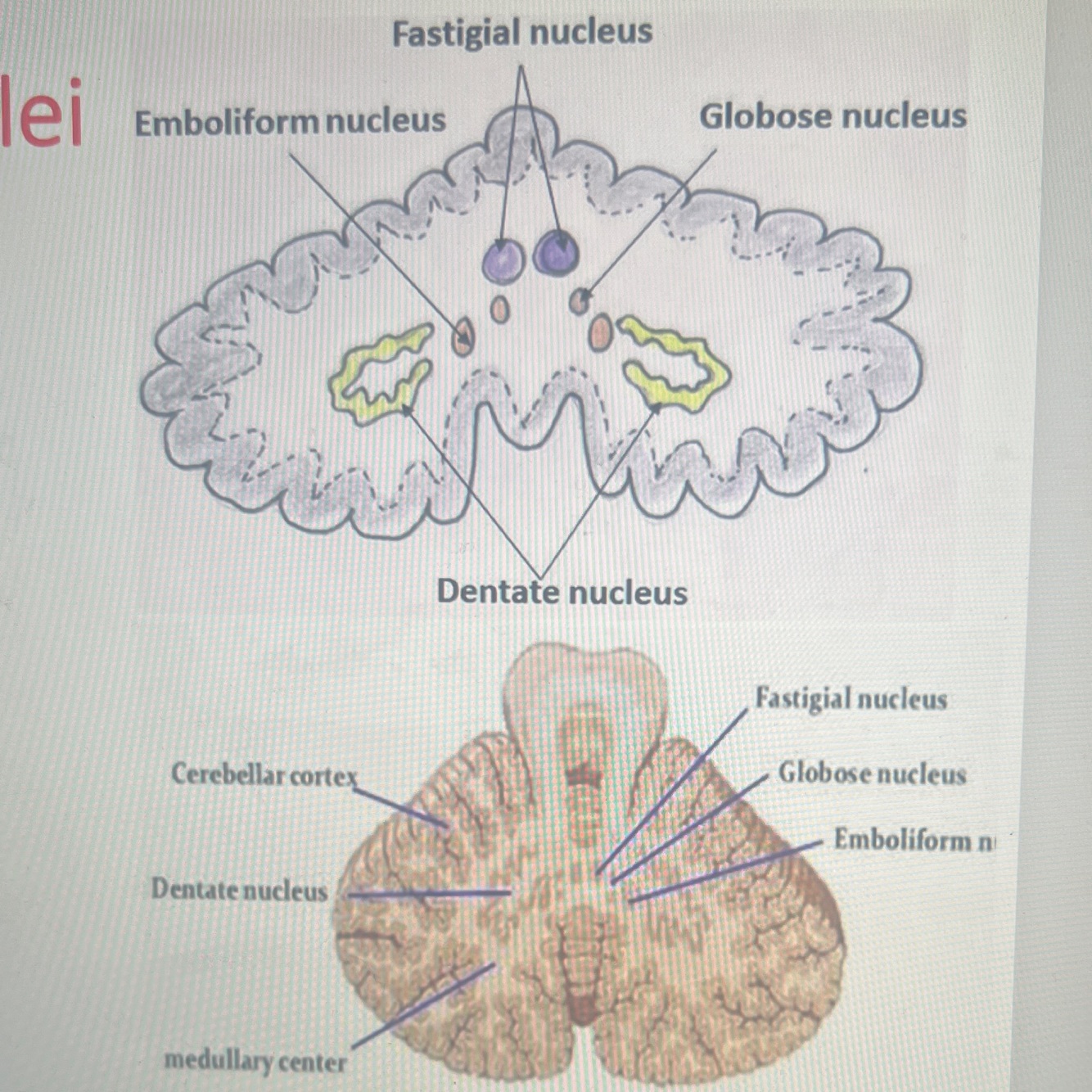 In between = interposed nuclei (globose and emboliform nuclei) (associated with the anterior lobe)