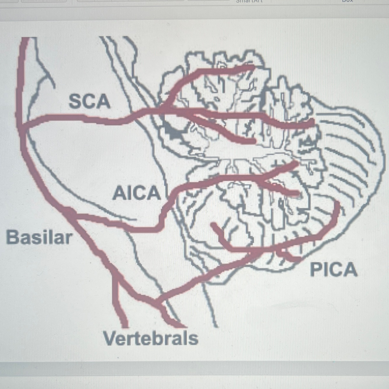 Posterior inferior cerebellar artery (PICA): Arises from vertebral artery