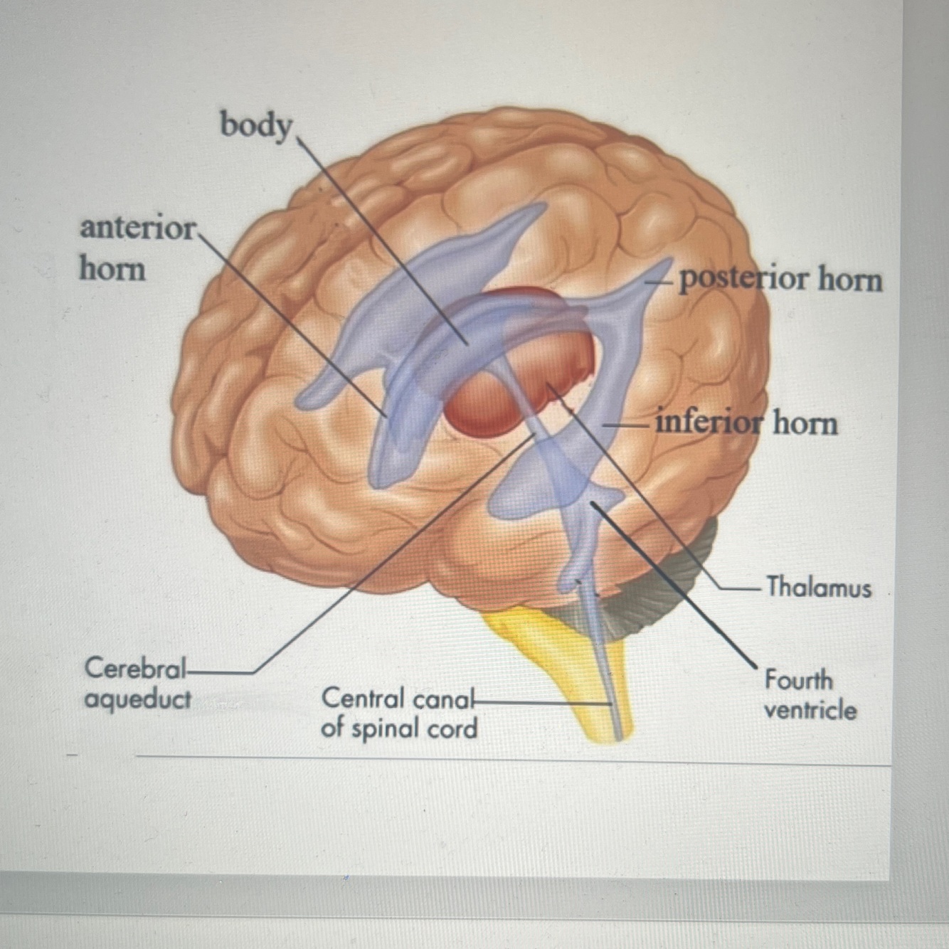Body and anterior, posterior and inferior horns