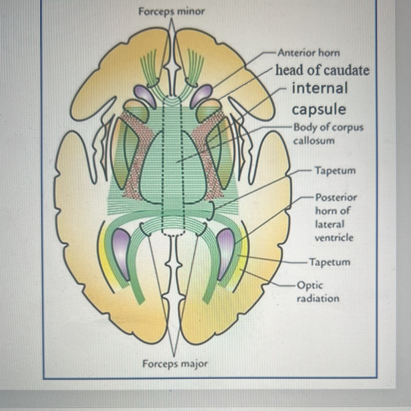 Identify the boundaries of the anterior horn of the lateral ventricle