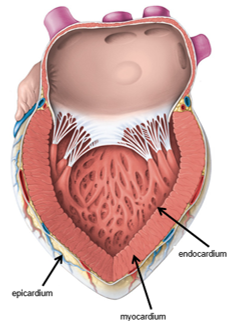What are the three layers of tissue of the heart?
