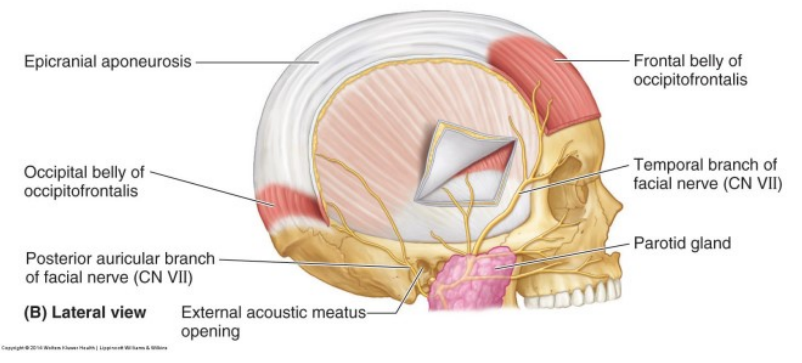 Connects frontal and occipital belly of Occipitofrontalis