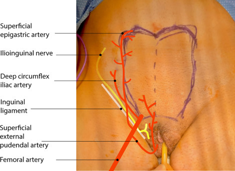 Arterial supply of the skin and SC layers of the anterior abdo wall and mons pubis