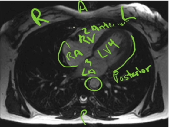 Posteriorlateral LA, LV, anterolateral papillary muscle