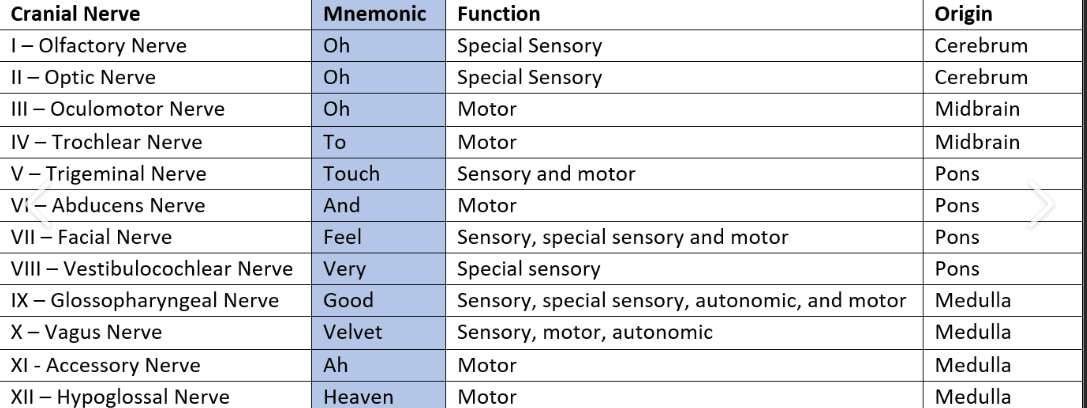 name the cranial nerves and what is the mneumonic