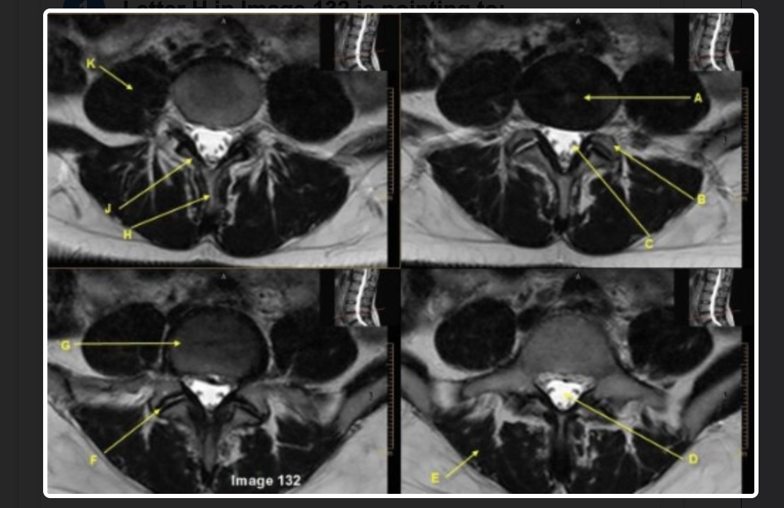 LETTER H IS A. LaminaB. PedicleC. Facet jointD. Spinal canalE. Spinous process