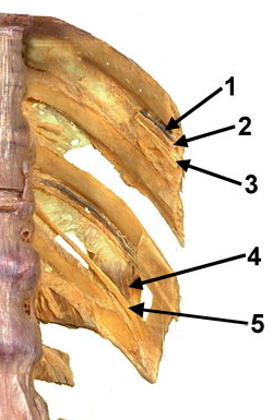 Each thoracic spinal nerve emerges from the intervertebal foramen and divides into a dorsal and a ventral ramus. The ventral ramus continues as the intercostal nerve of the space.