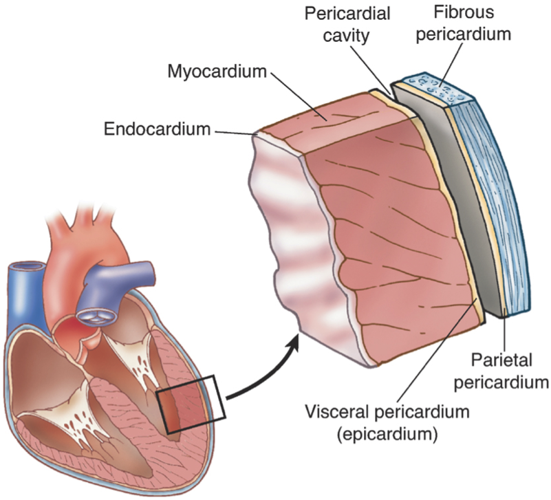 The pericardium fixes the heart to the mediastinum, gives protection against infection, and provides the lubrication for the heart.