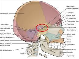 Pituitary gland sits within the pituitary fossa, which is within the sphenoid bone