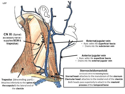 SCM has 2 heads - both attach superiorly to the mastoid process
