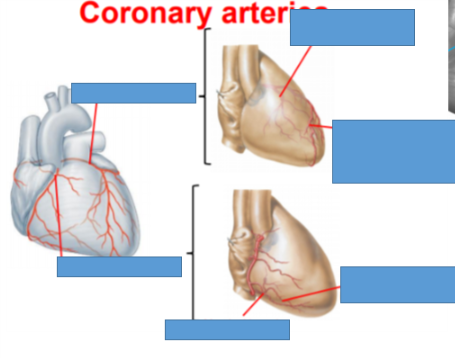Everything comes from the right coronary (marginal, circumlex, posterior inter-ventricular) except the LAD.