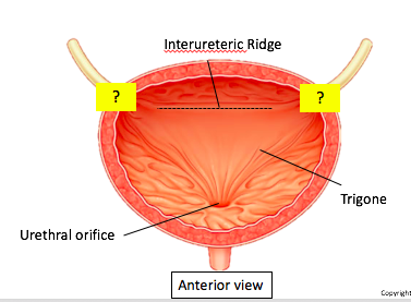 Ureteric orifices: Have mucosal flaps (act as valve) to prevent vesicaluretteral reflux.
