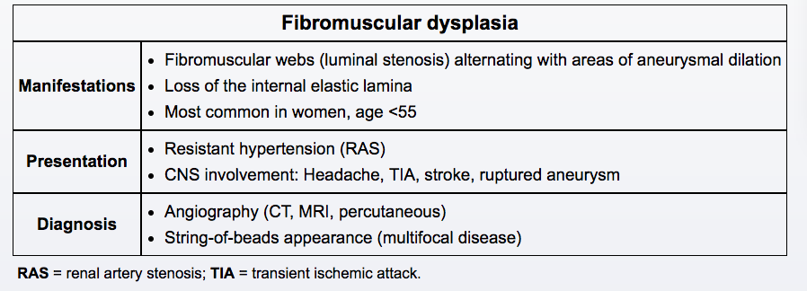 What is the characteristic pathologic findings of Fibromuscular Dysplasia?