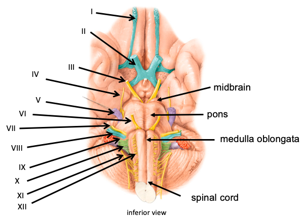 which of CNIX, X, XI and XII does not connect to CNS at medulla?