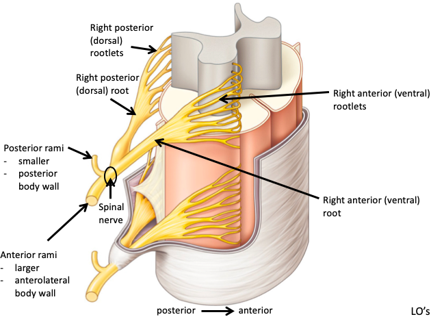 mixed - anterior and posterior roots come together and mix forming spinal nerve