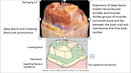 Deep fascia is like seran wrap holding everything together. It will surround a neurovascular bundle, artery nerve and vein that run together