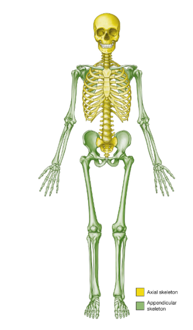 1) Axial skeleton – cranium, vertebrae, ribs and sternum