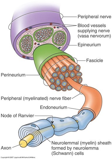 •Each nerve has a connective tissue framework and blood vessels (vasa nervorum)