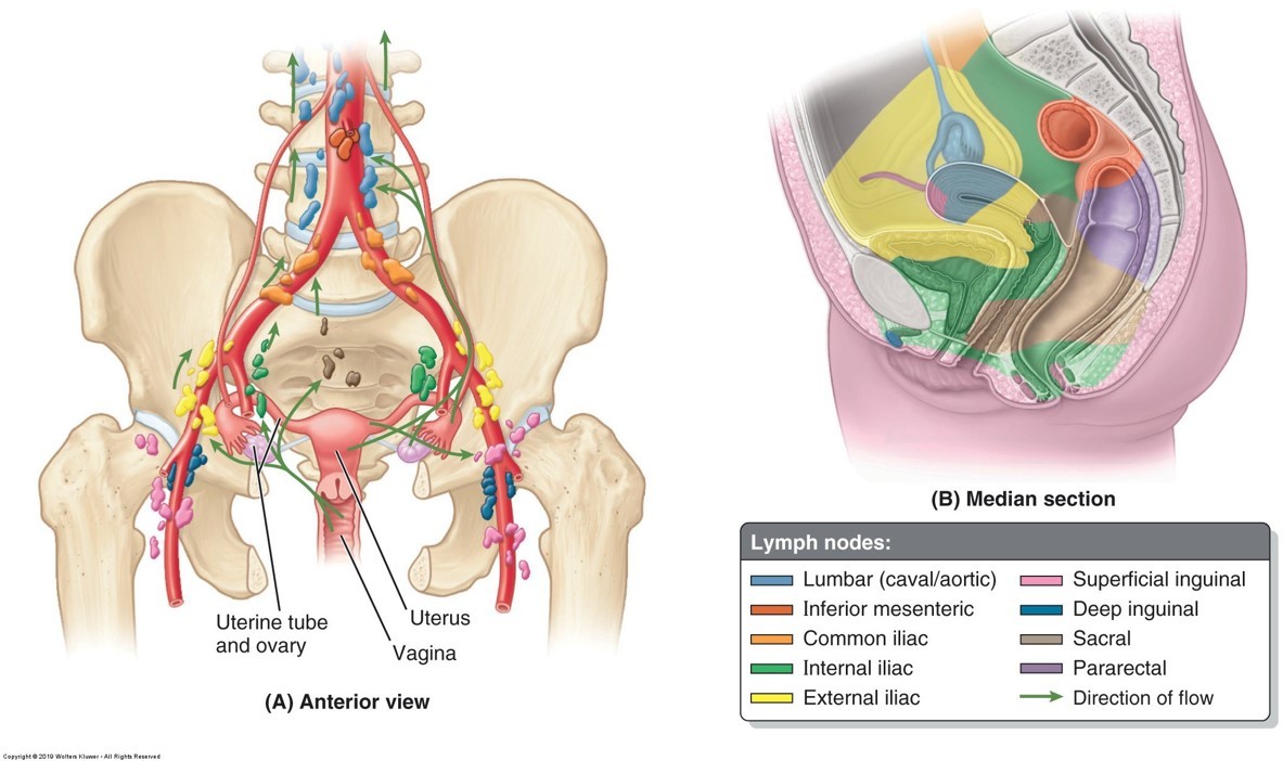 The Internal iliac arteries supply most of the pelvic organs (everything except the ovaries). The internal iliac then splits into: