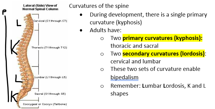 What are the 2 types of curvatures of the spine?