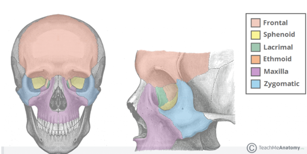 7 bones of the skull contribute to these walls (the 6 in the diagram + nasal bone)
